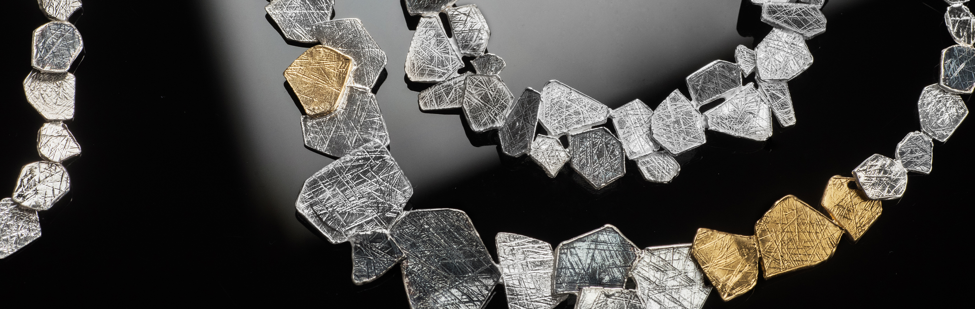 We all know how fragile our world is, balanced on subterranean tectonic plates constantly shifting and forming new land masses, volcanoes, etc. These stylized sterling Silver 925 “tectonic plates”, linked together as well in shifting and always varying shapes and sizes, are varied as well in their textures and in their shades of light, dark and Gold plated Silver of unending movement.